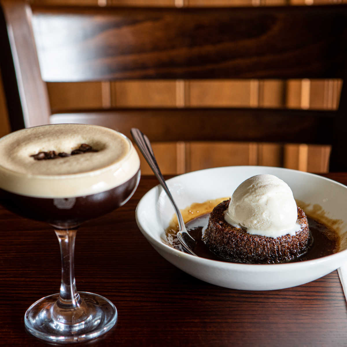 Proper sticky toffee pudding, vanilla ice cream (v) 610 kcals